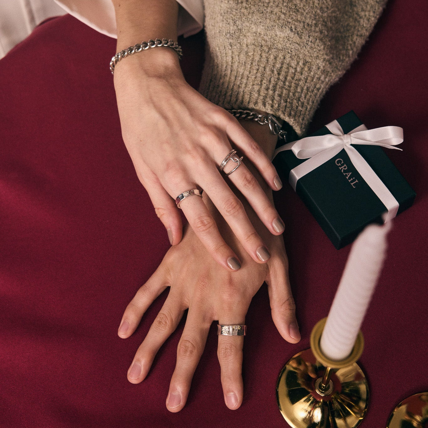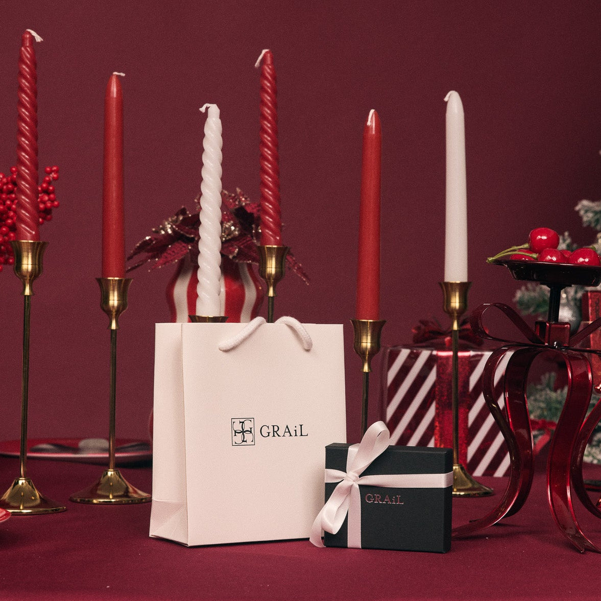 GRAiLのジュエリーを“特別な贈り物”として届けるための専用ラッピング。素材や色味にもこだわり、開封の瞬間まで美しく演出いたします。