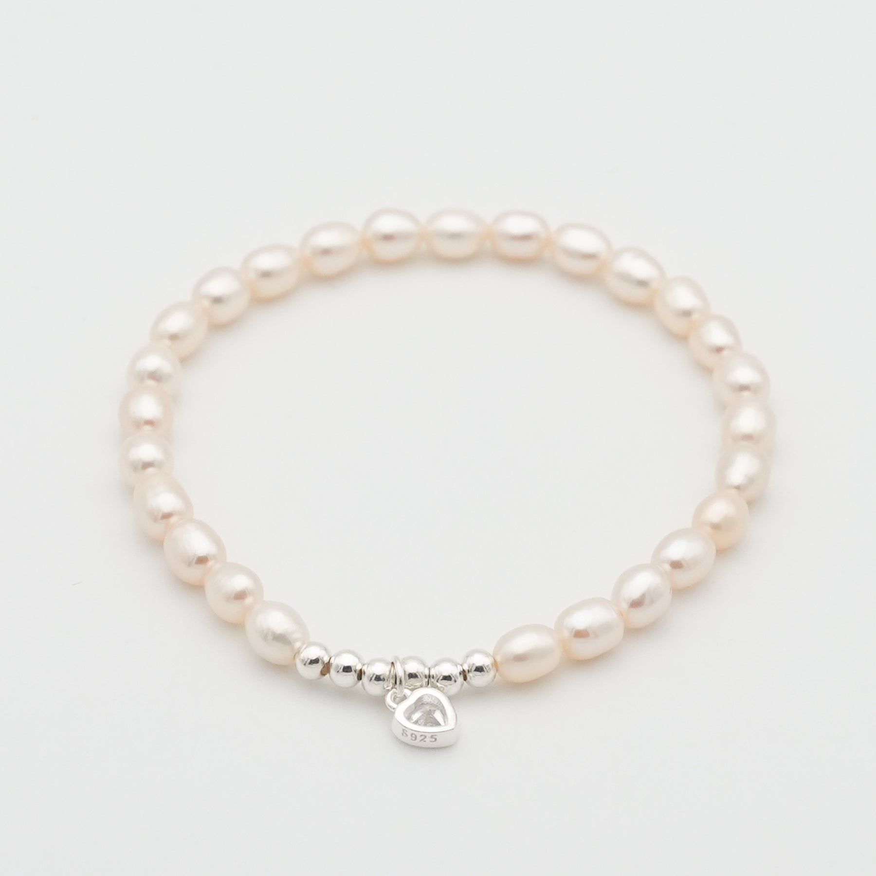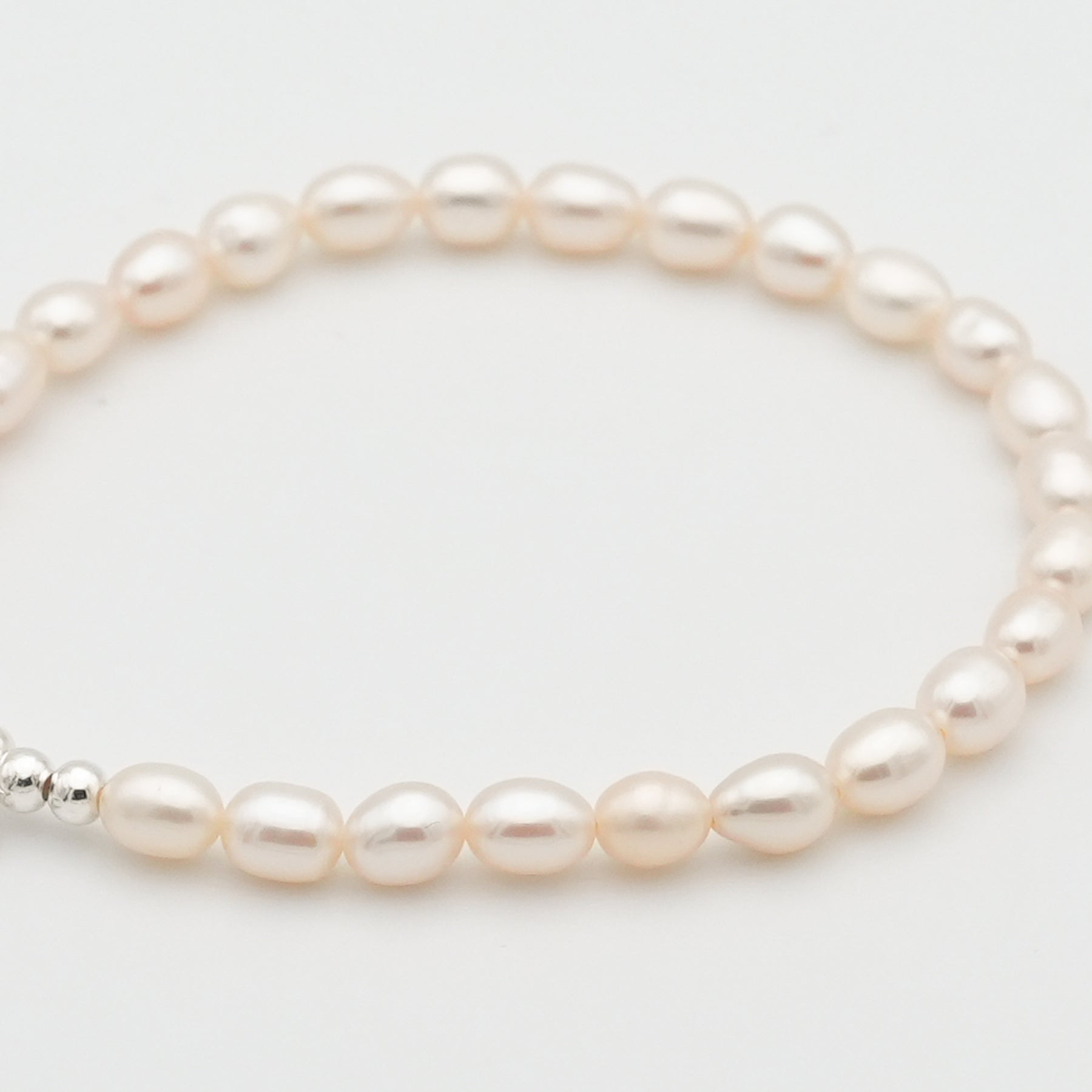 シンプルながらも洗練されたデザインが魅力です。淡水パールの輝きが手元に華やかさをプラスし、存在感を際立たせます。